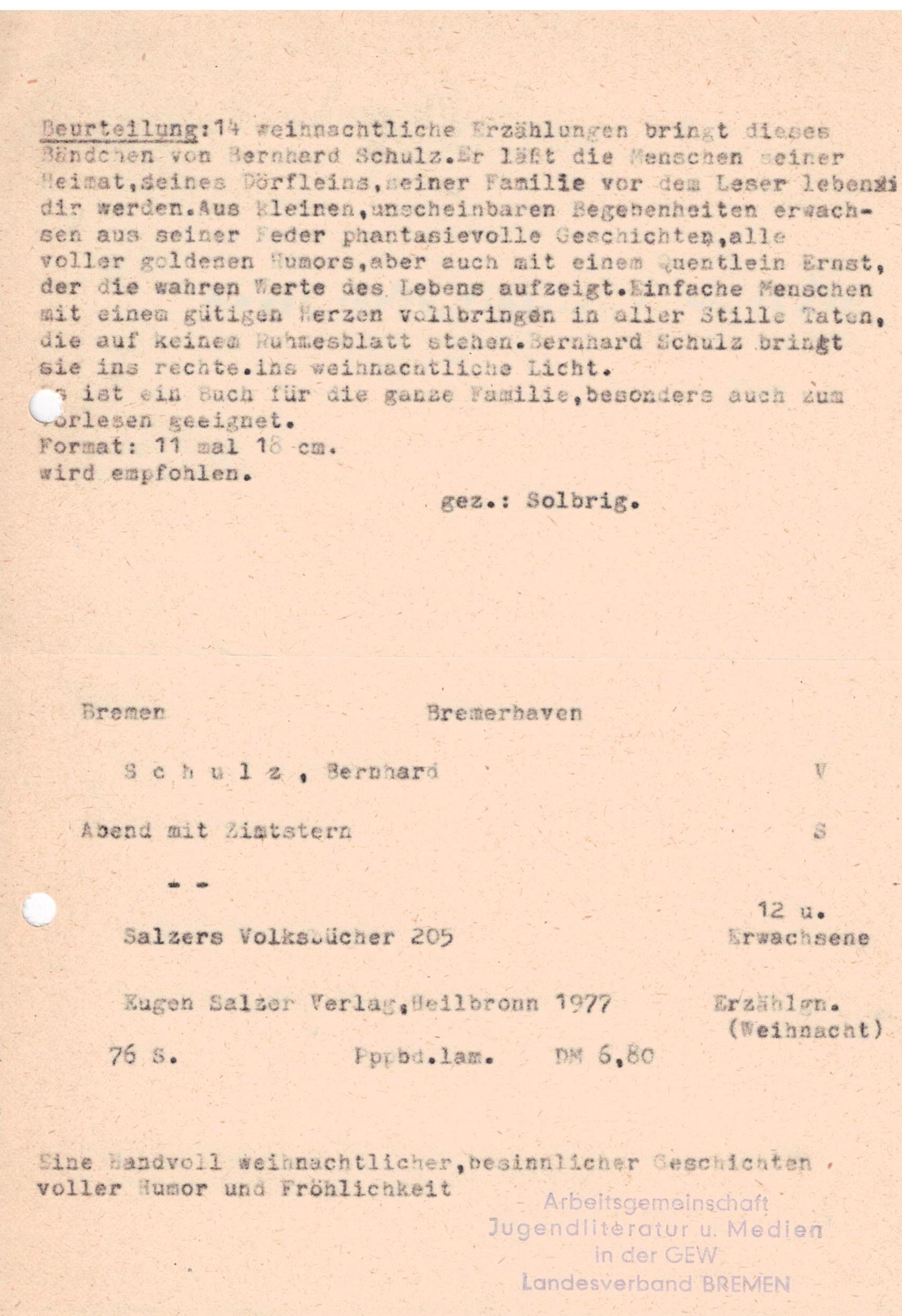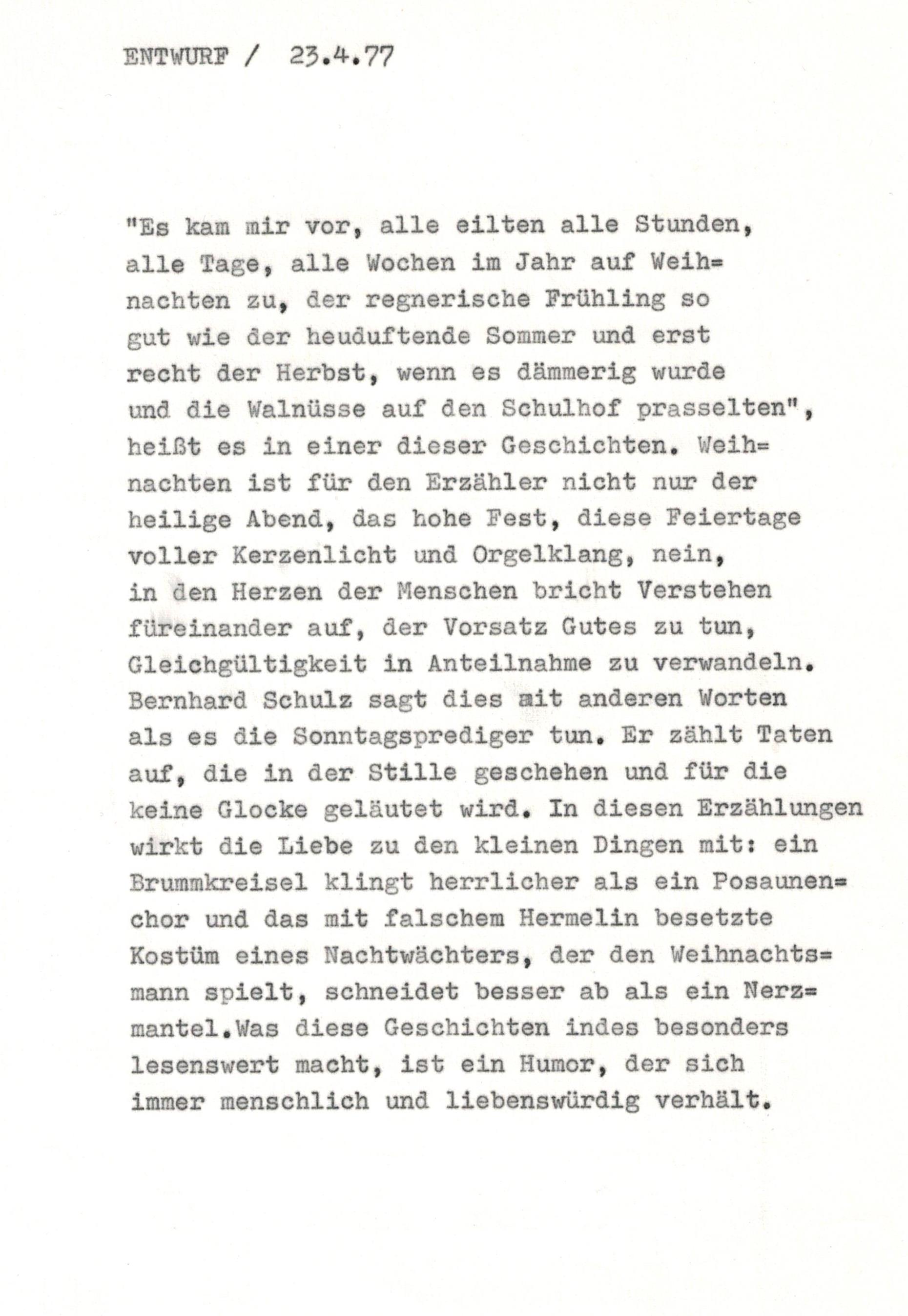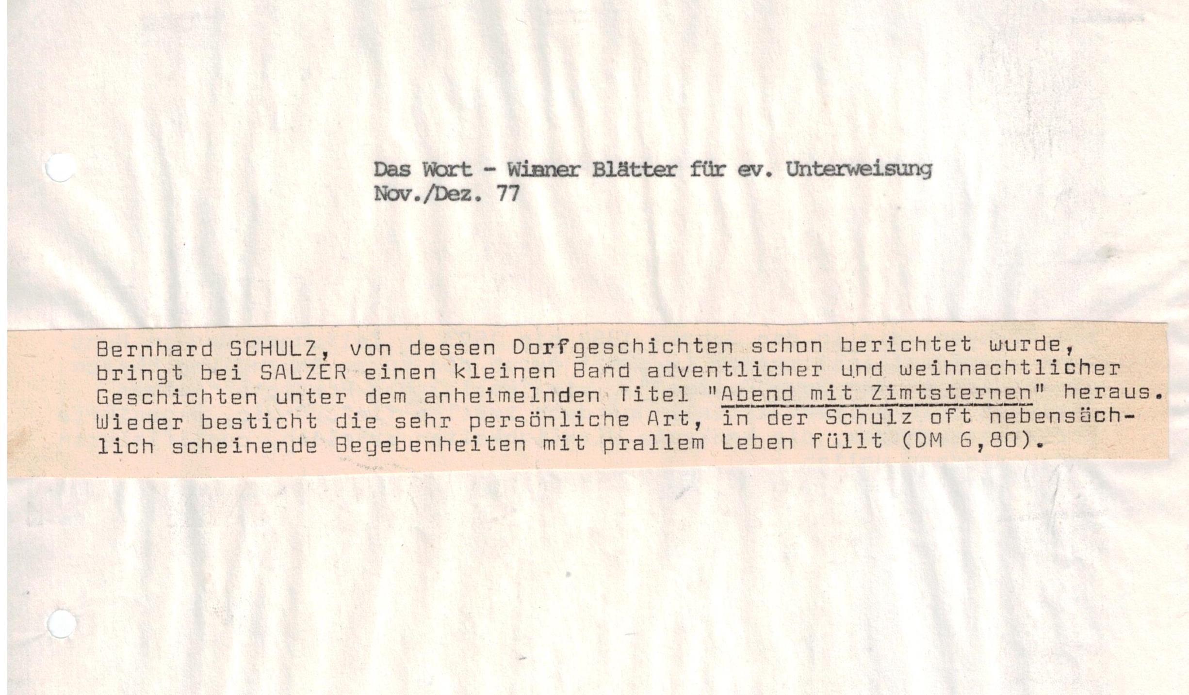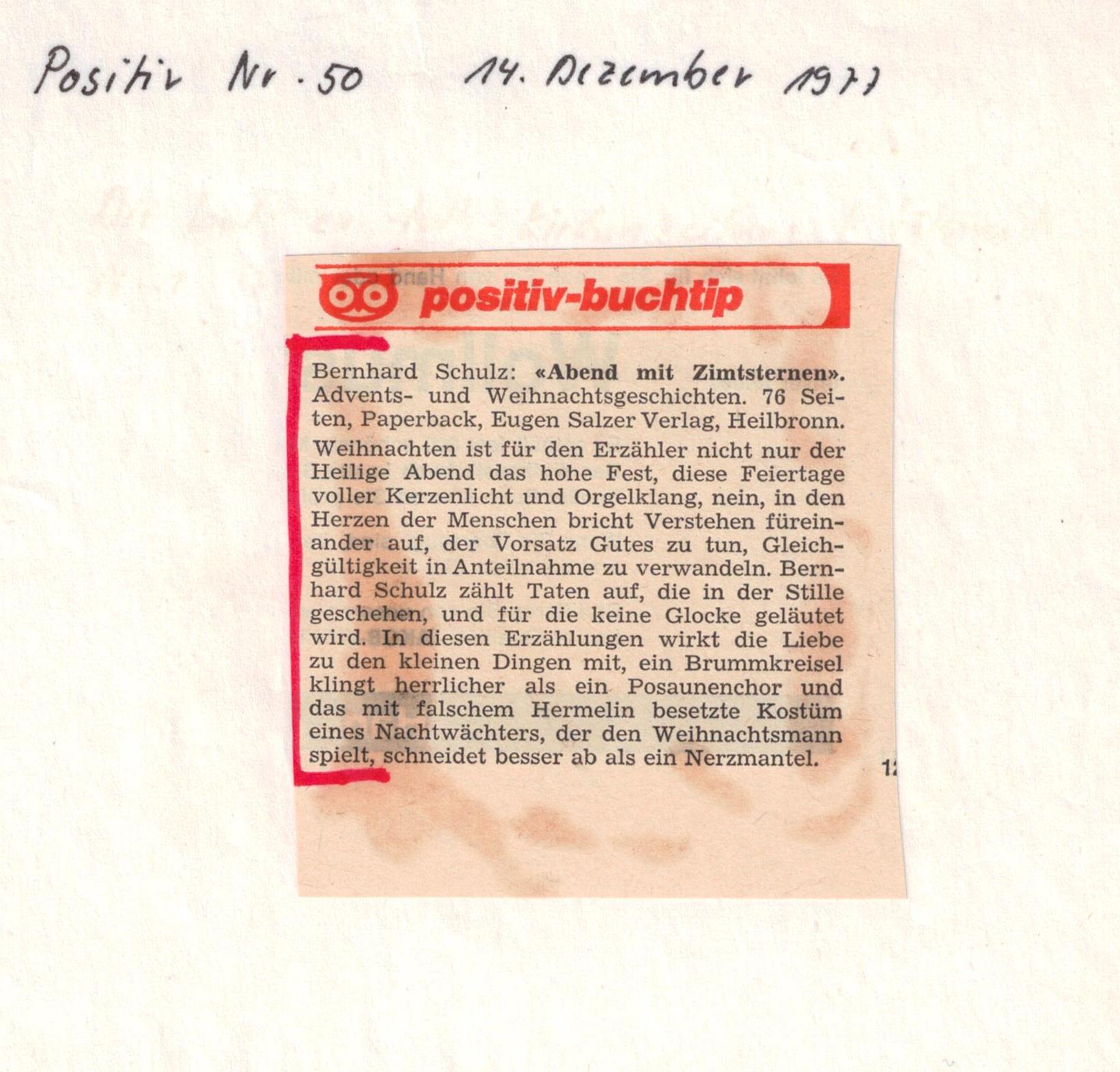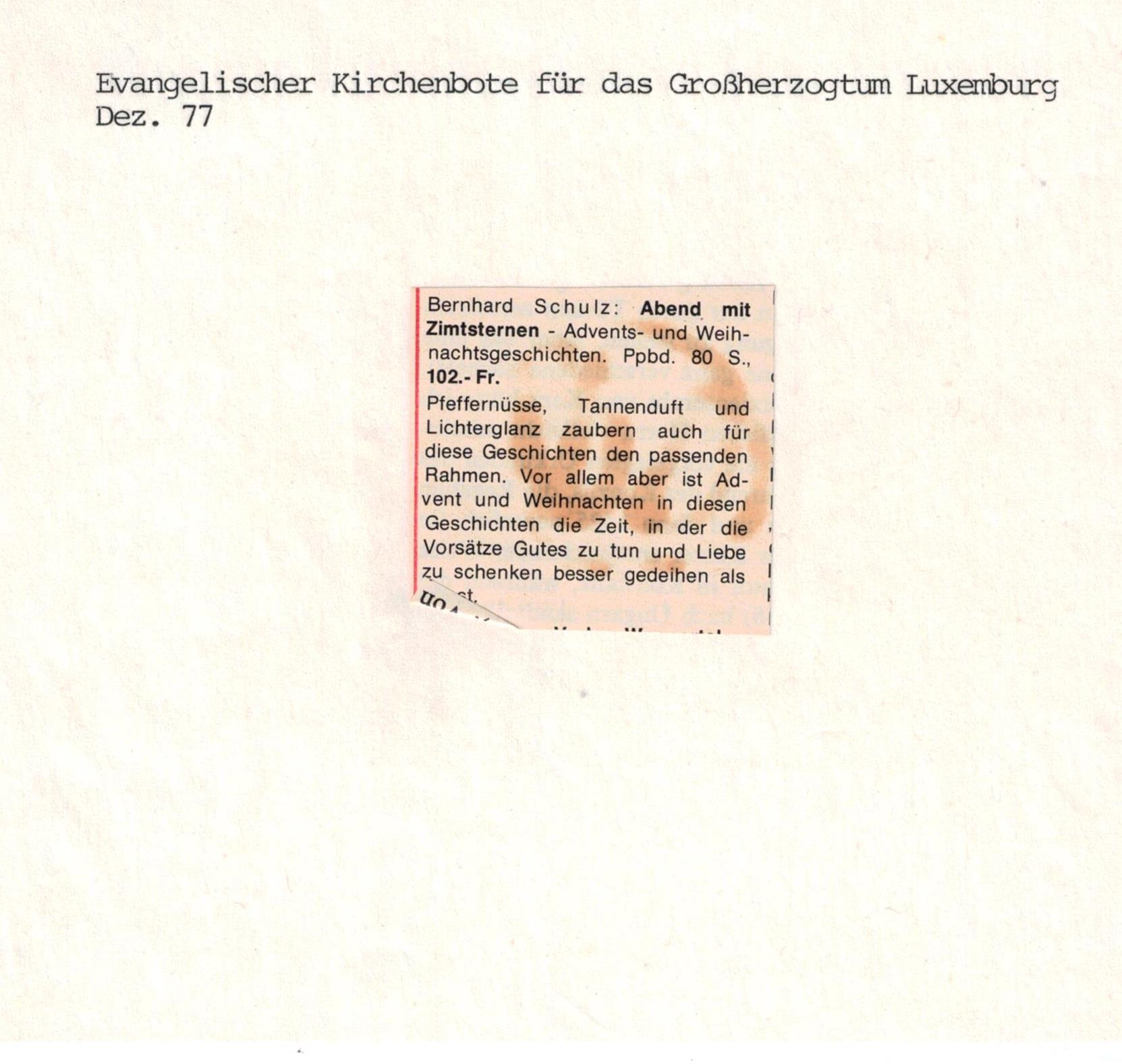 Weihnachtsgeschichten von Bernhard Schulz überschrieben, gerade passend zum Fest.