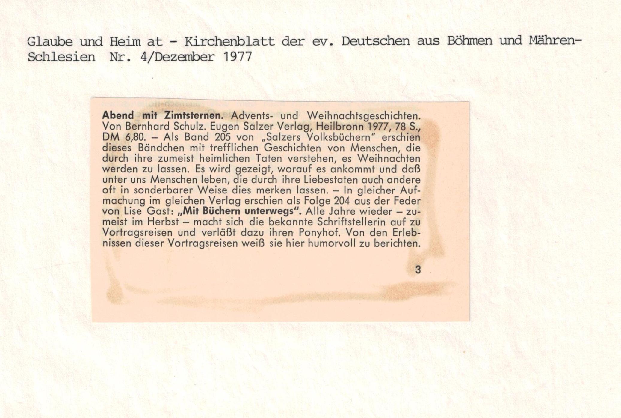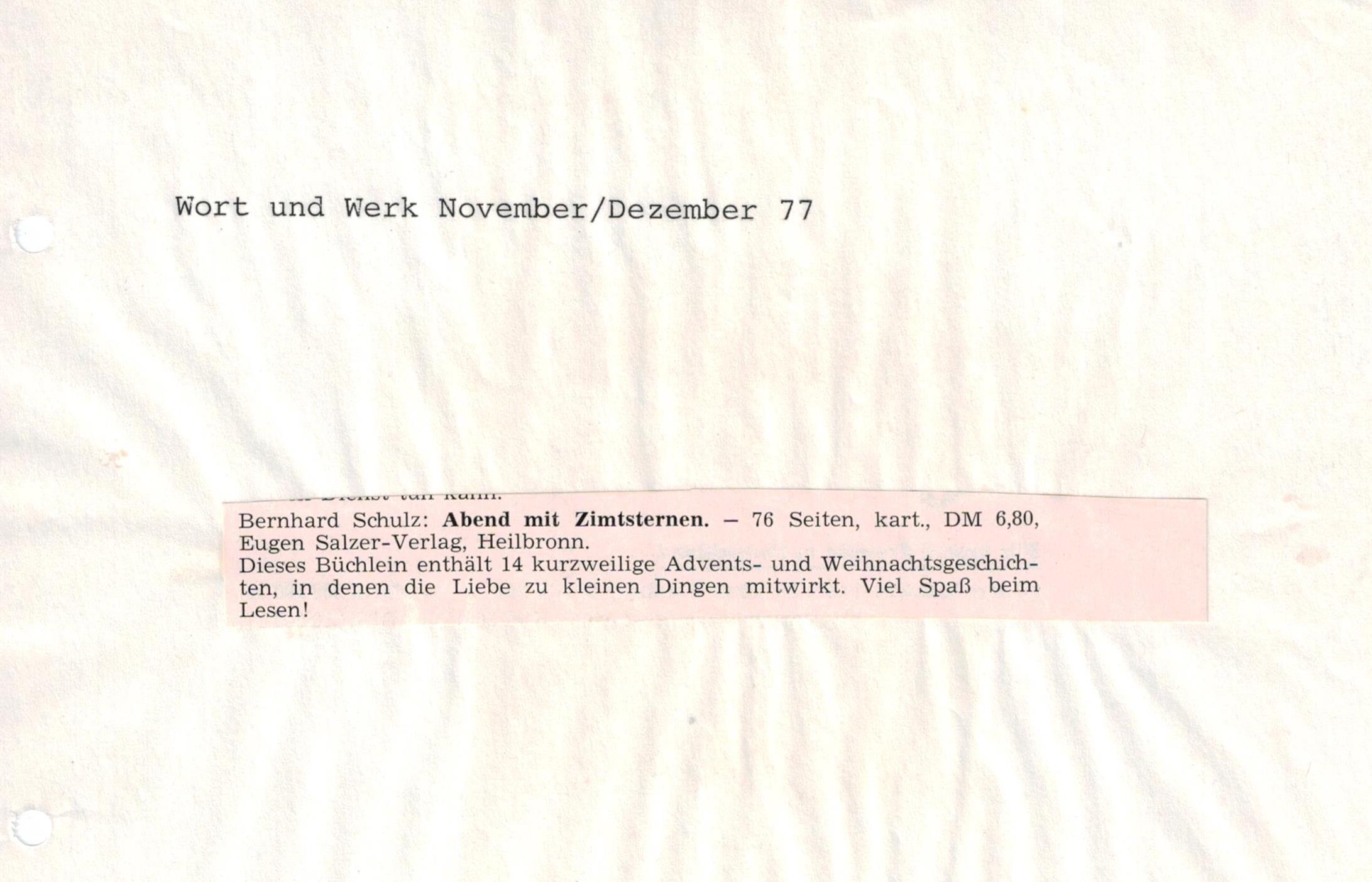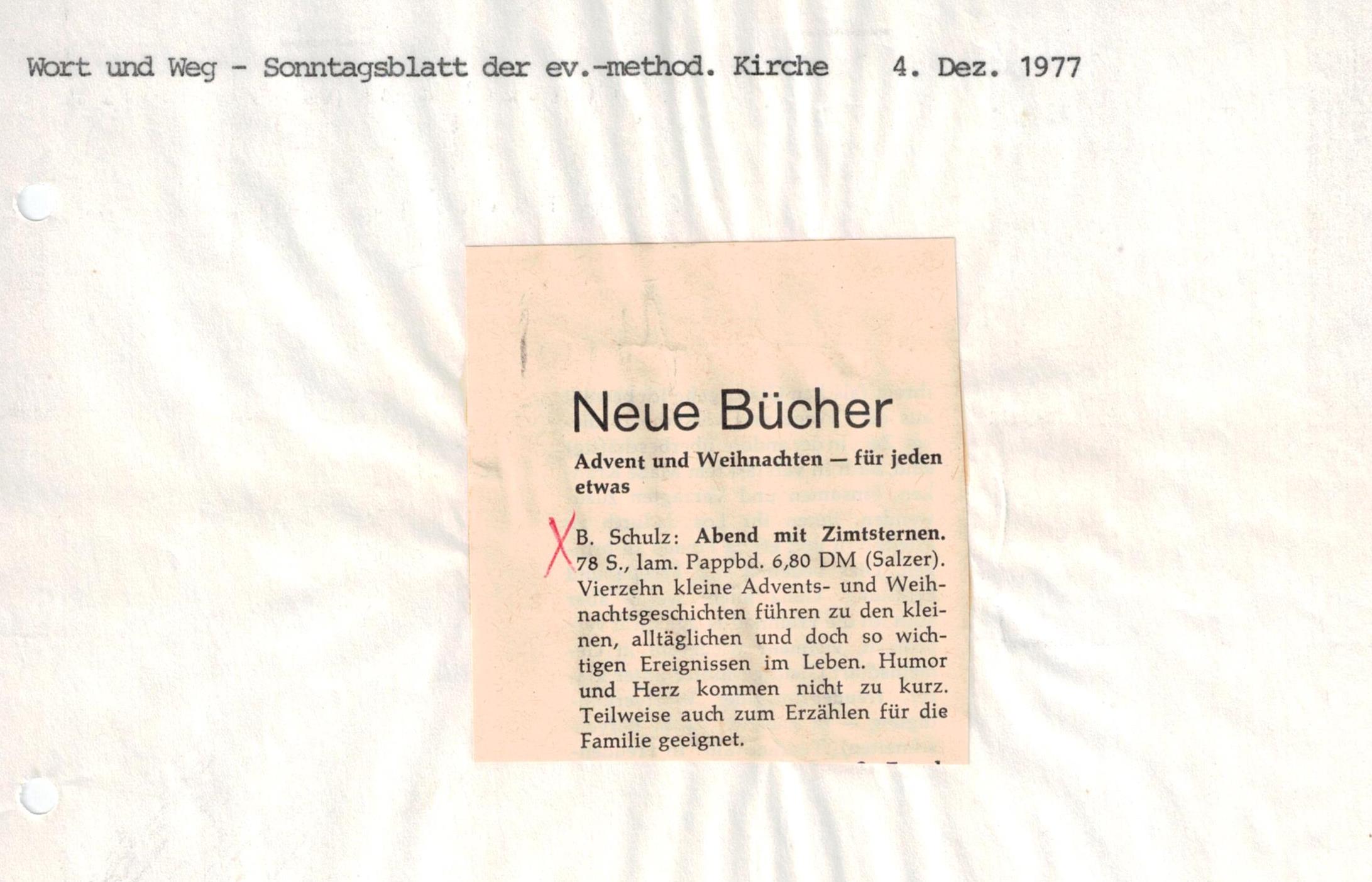 Im Eugen Salzer Verlag erschien unter dem Titel „Abend mit Zimtsternen" eine