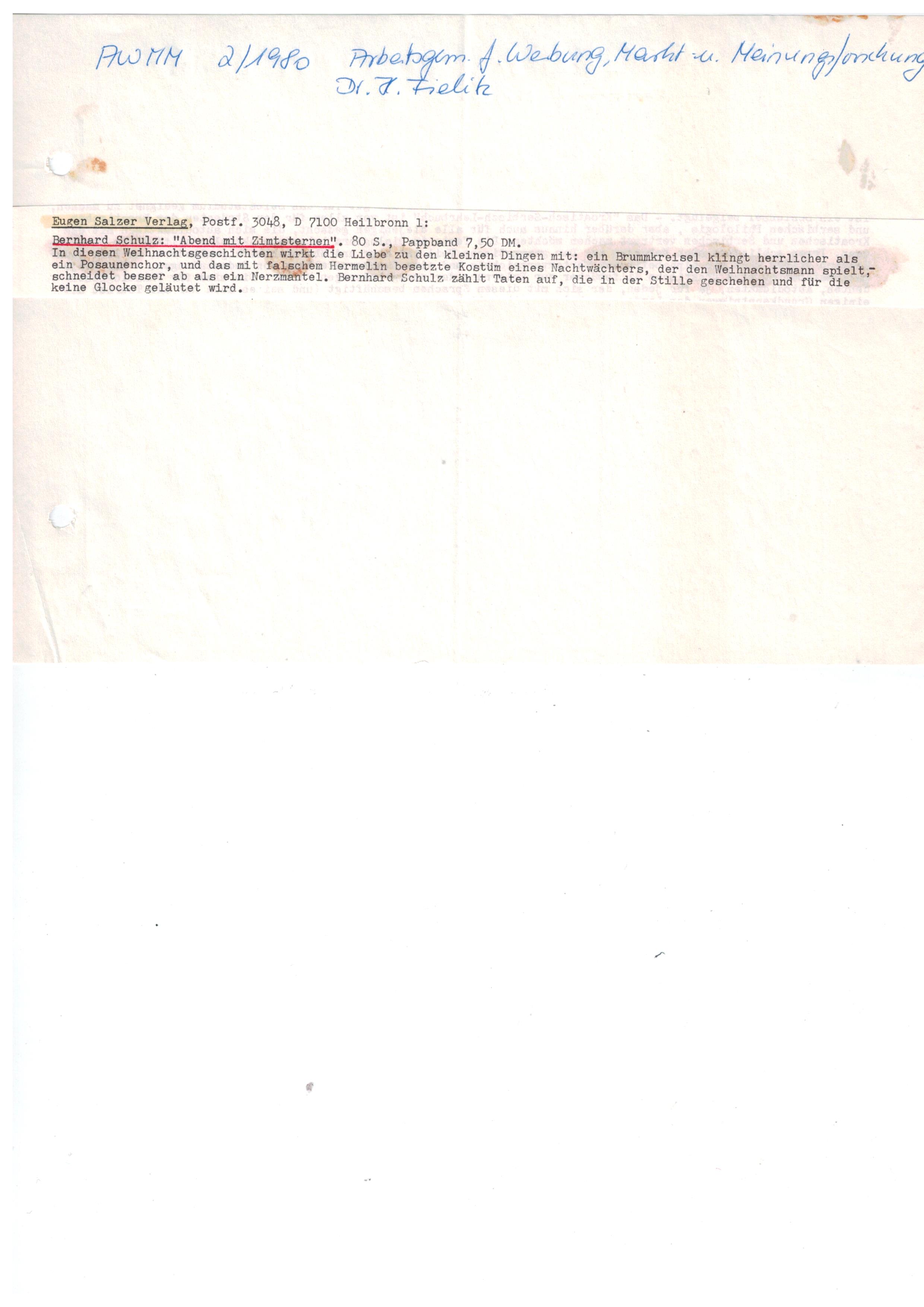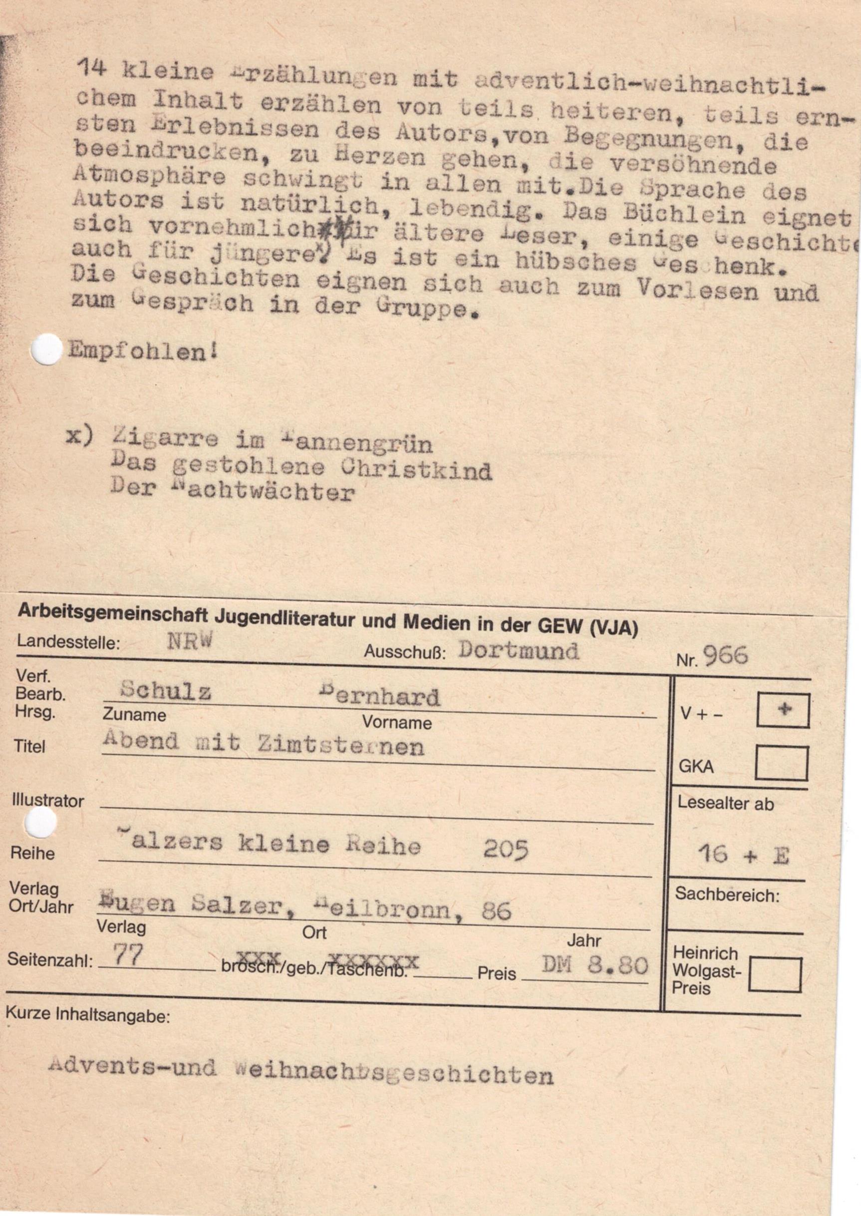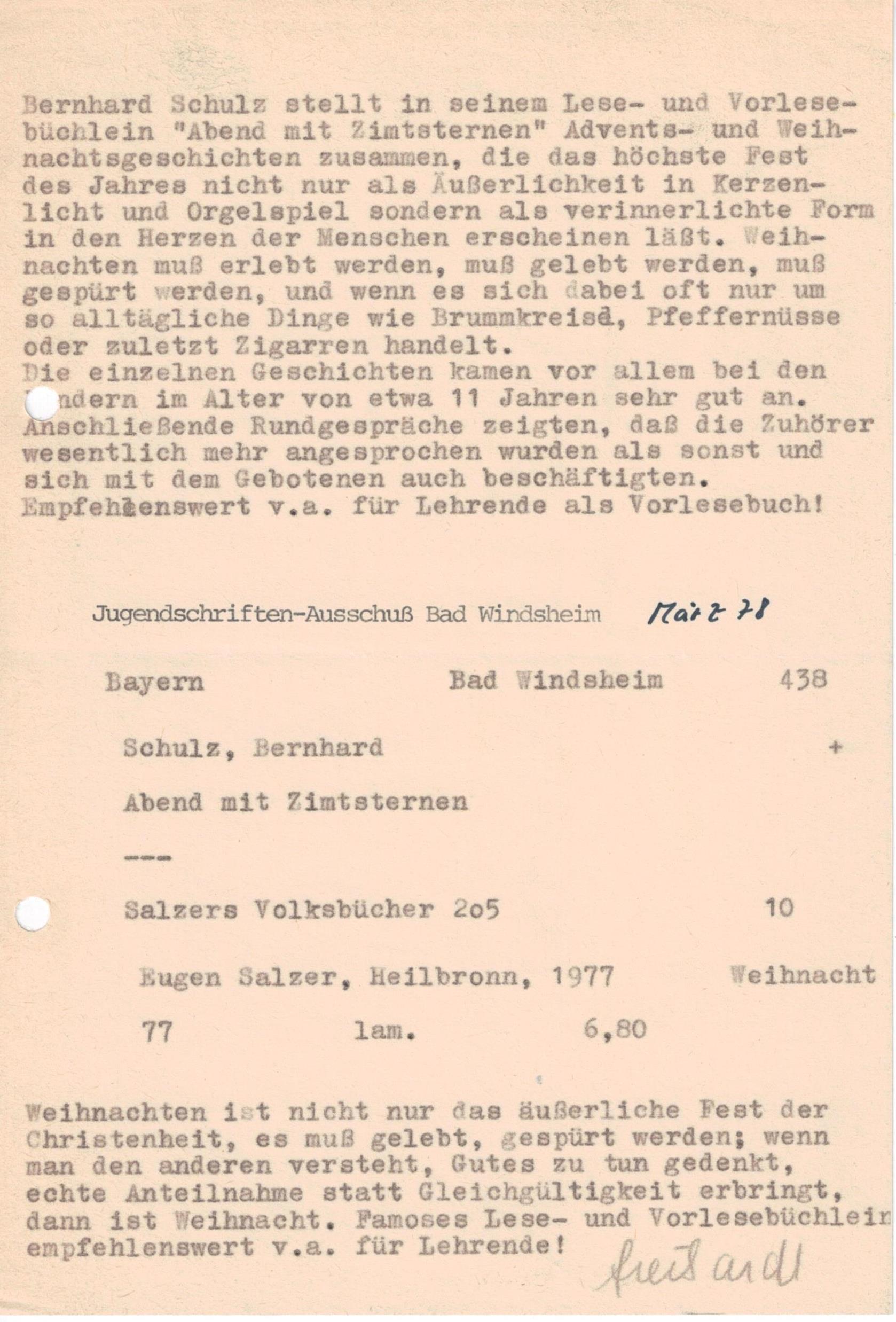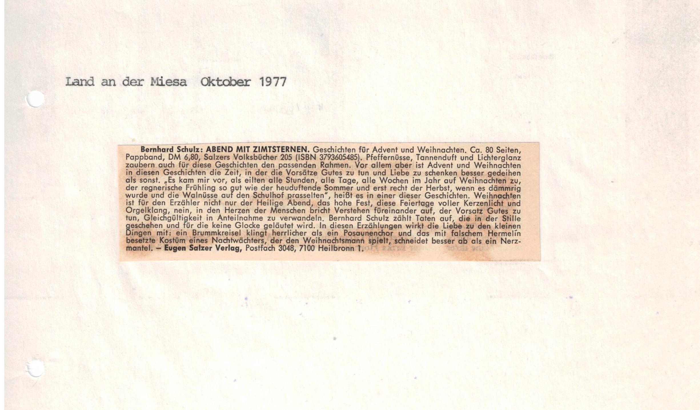 Im Eugen Salzer Verlag erschien unter dem Titel „Abend mit Zimtsternen" eine