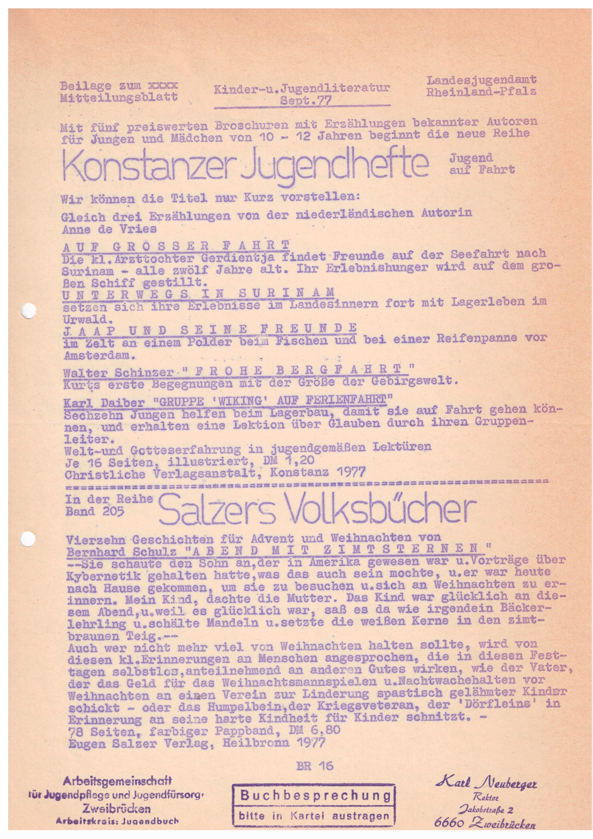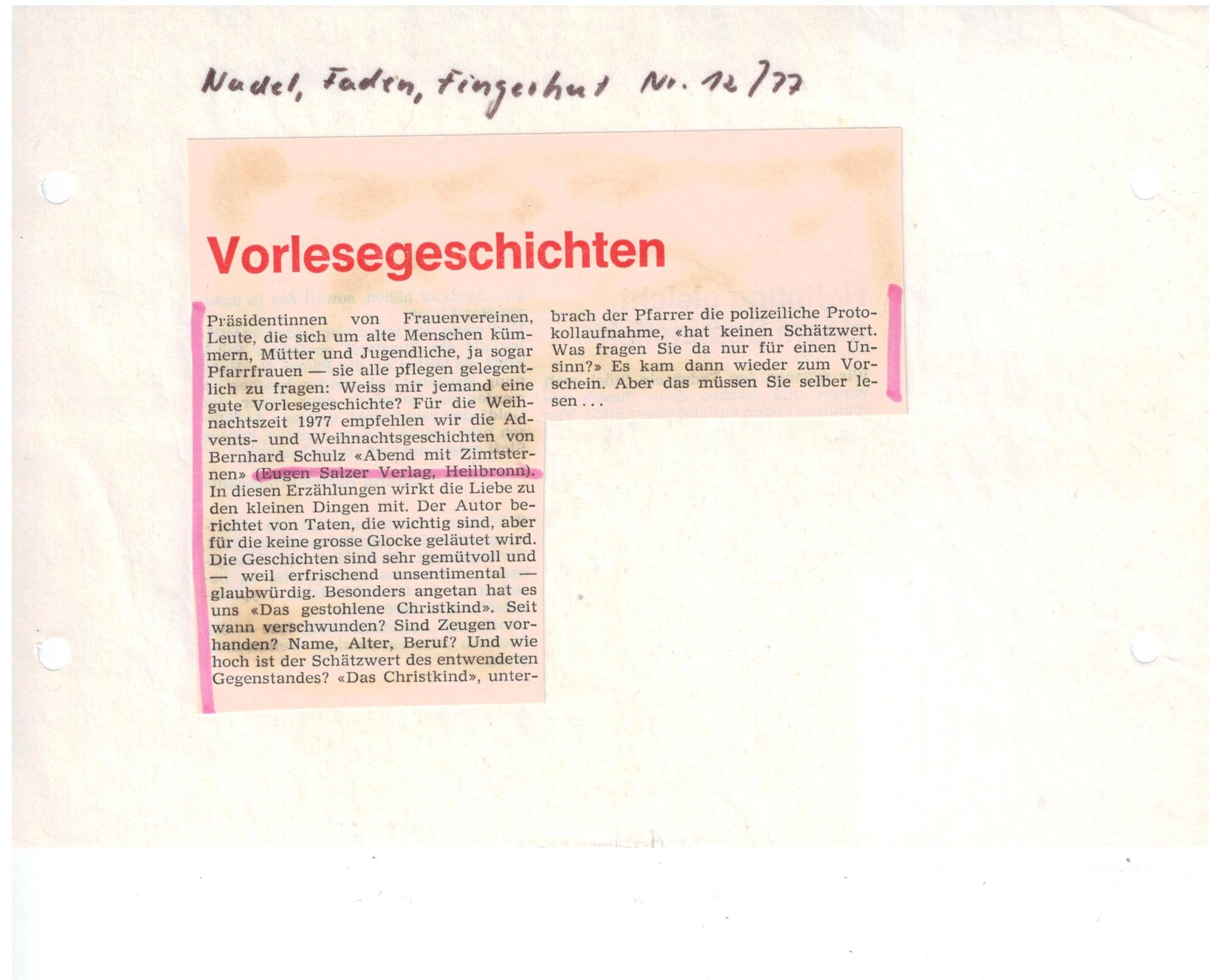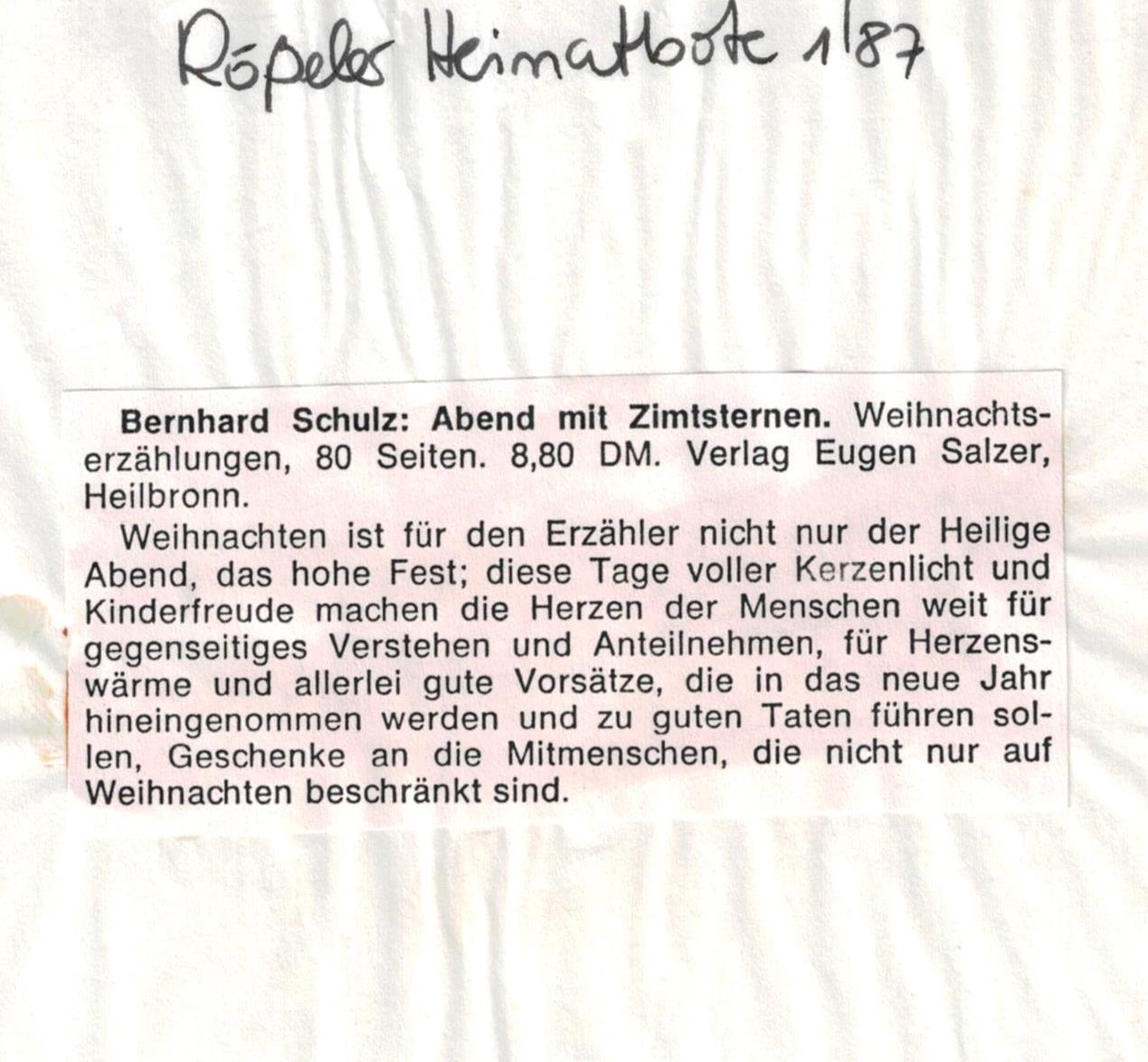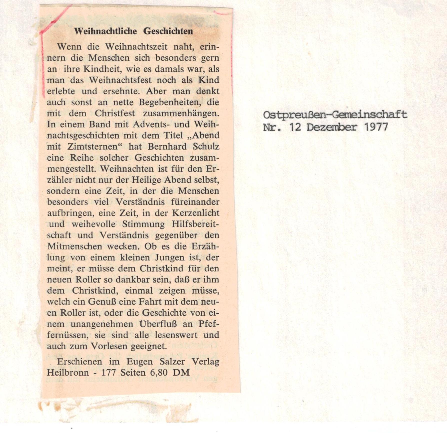 Weihnachtsgeschichten, 80 Seiten, 6,80 DM, Eugen SalzerVerlag, Heilbronn.