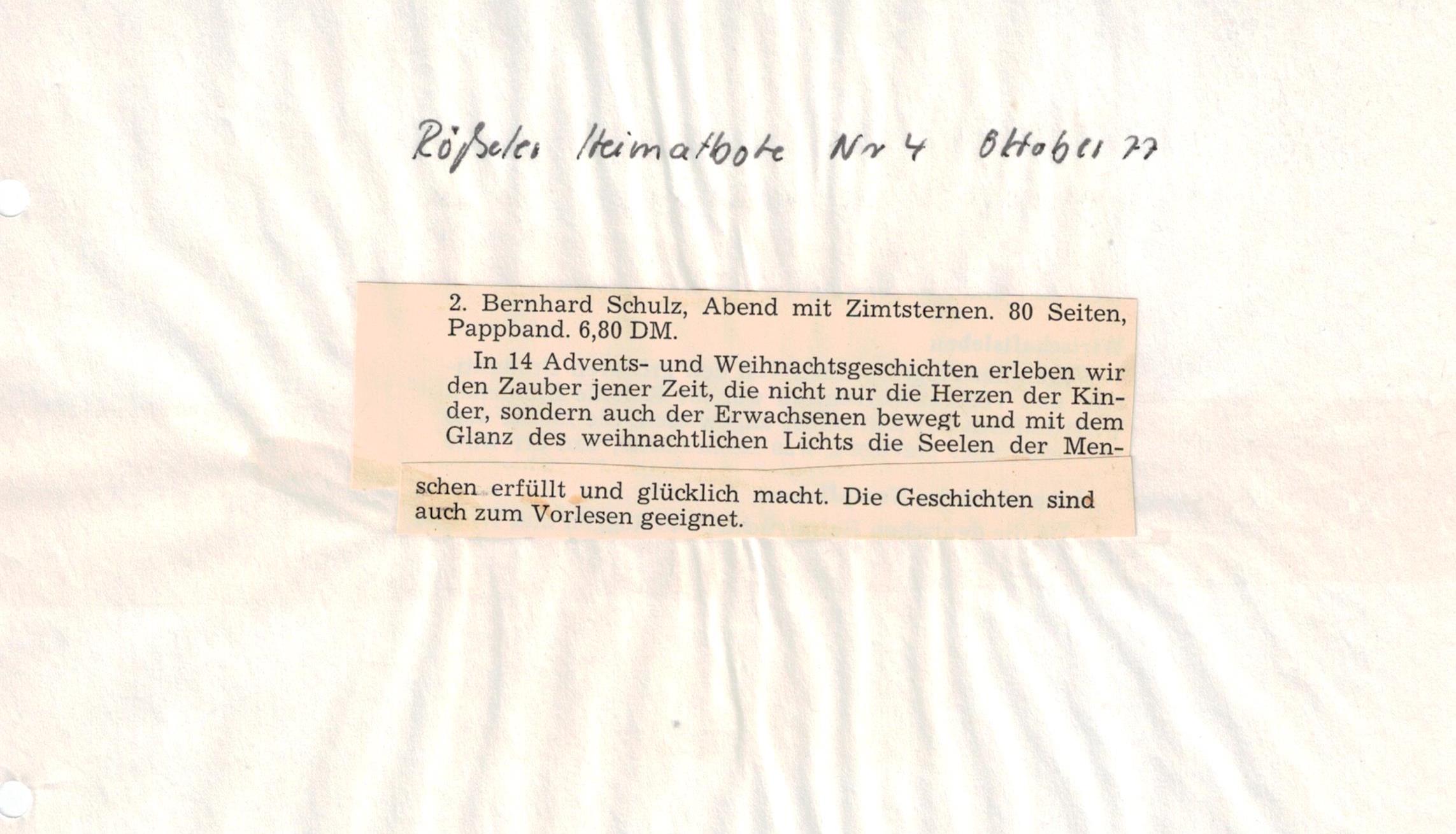 Sammlung von Adventsund Weihnachtsgeschichten des Osnabrücker Autors Bernhard Schulz (80 Seiten, 6,80
