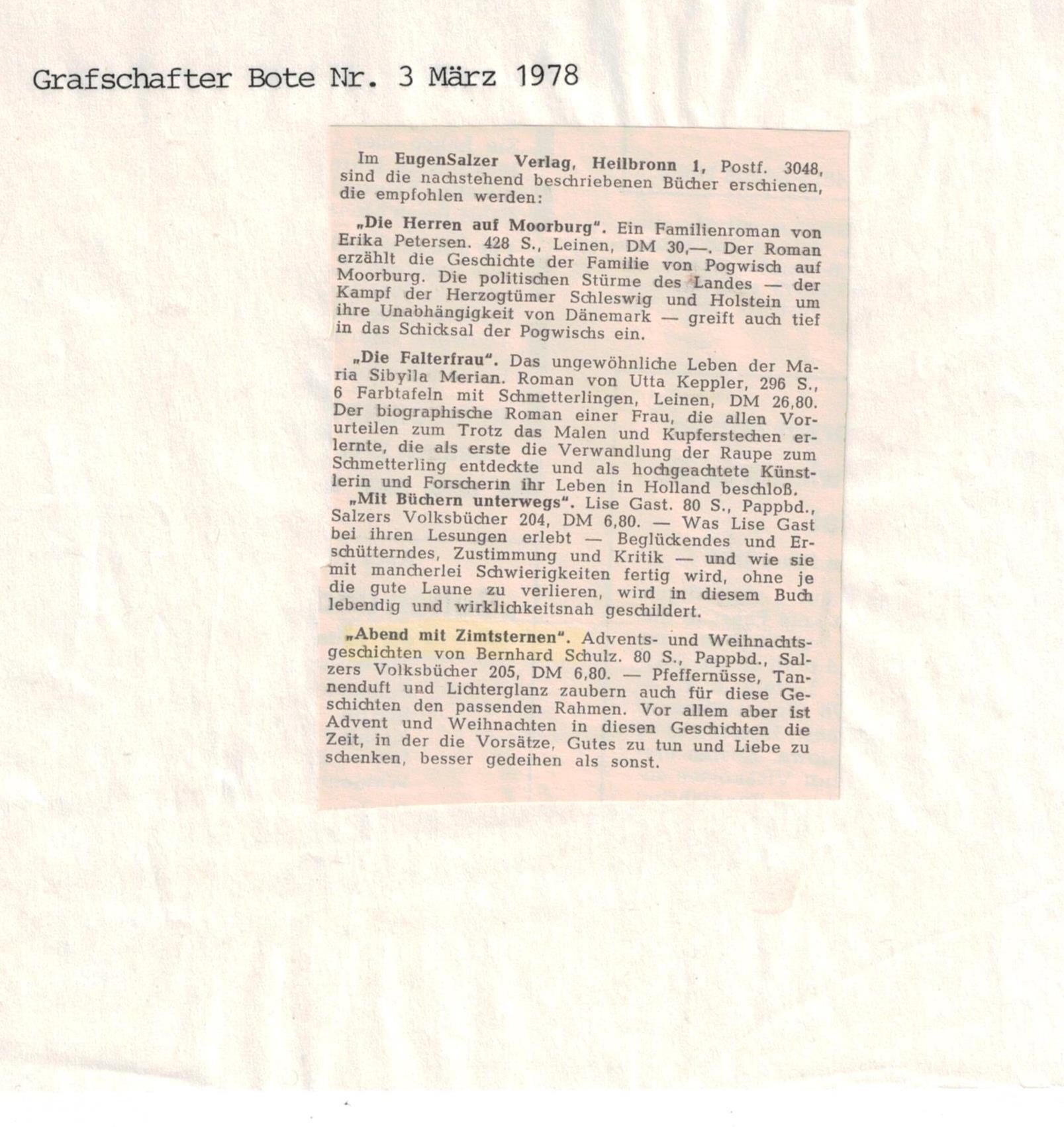 und im Eugen SalzerVerlag, Heilbronn, erschien. Der Verlag musste bereits vier Wochen nach Erscheinen die 2.