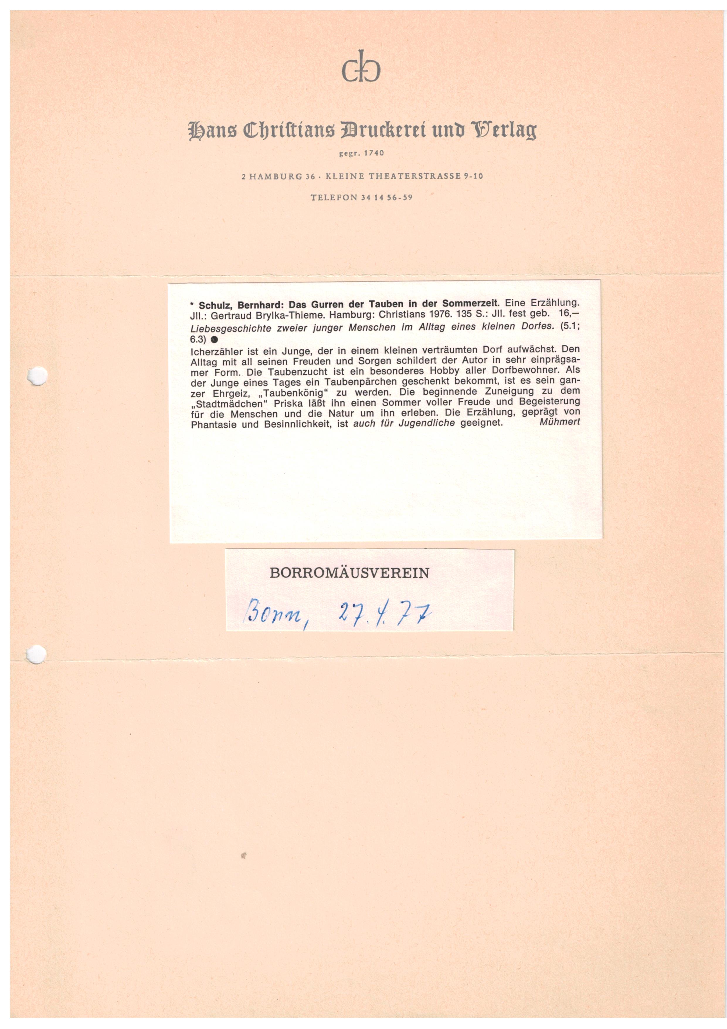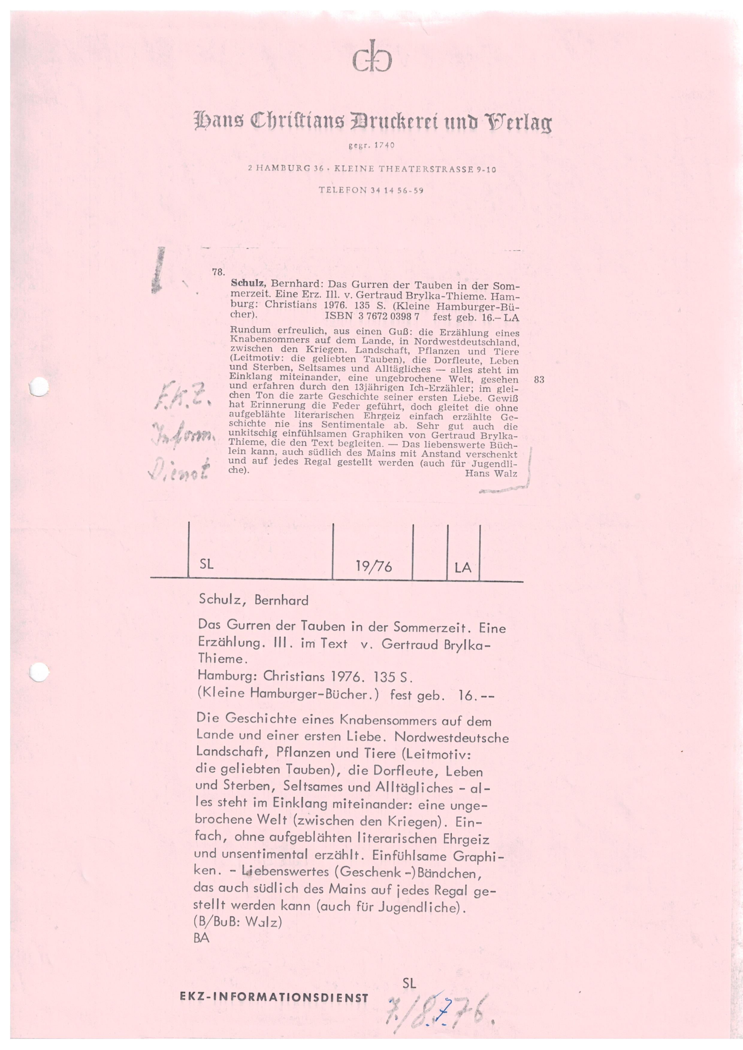 Hamburg, erschienen. Erwähnenswert der Zusammenklang des Bildschmucks (Umschlagsentwurf und