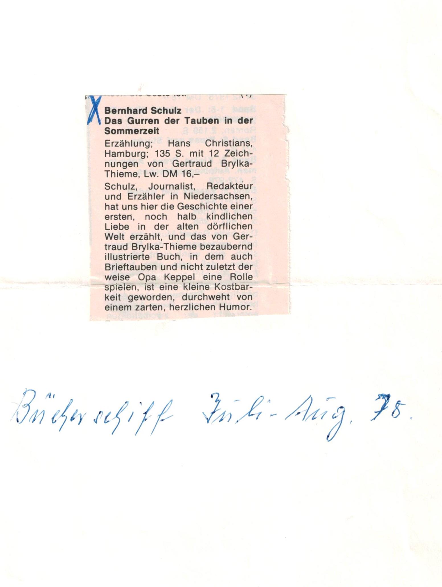 als Erinnerung. - Aus: Bergerdorfer Ztg. 19/20.6.76