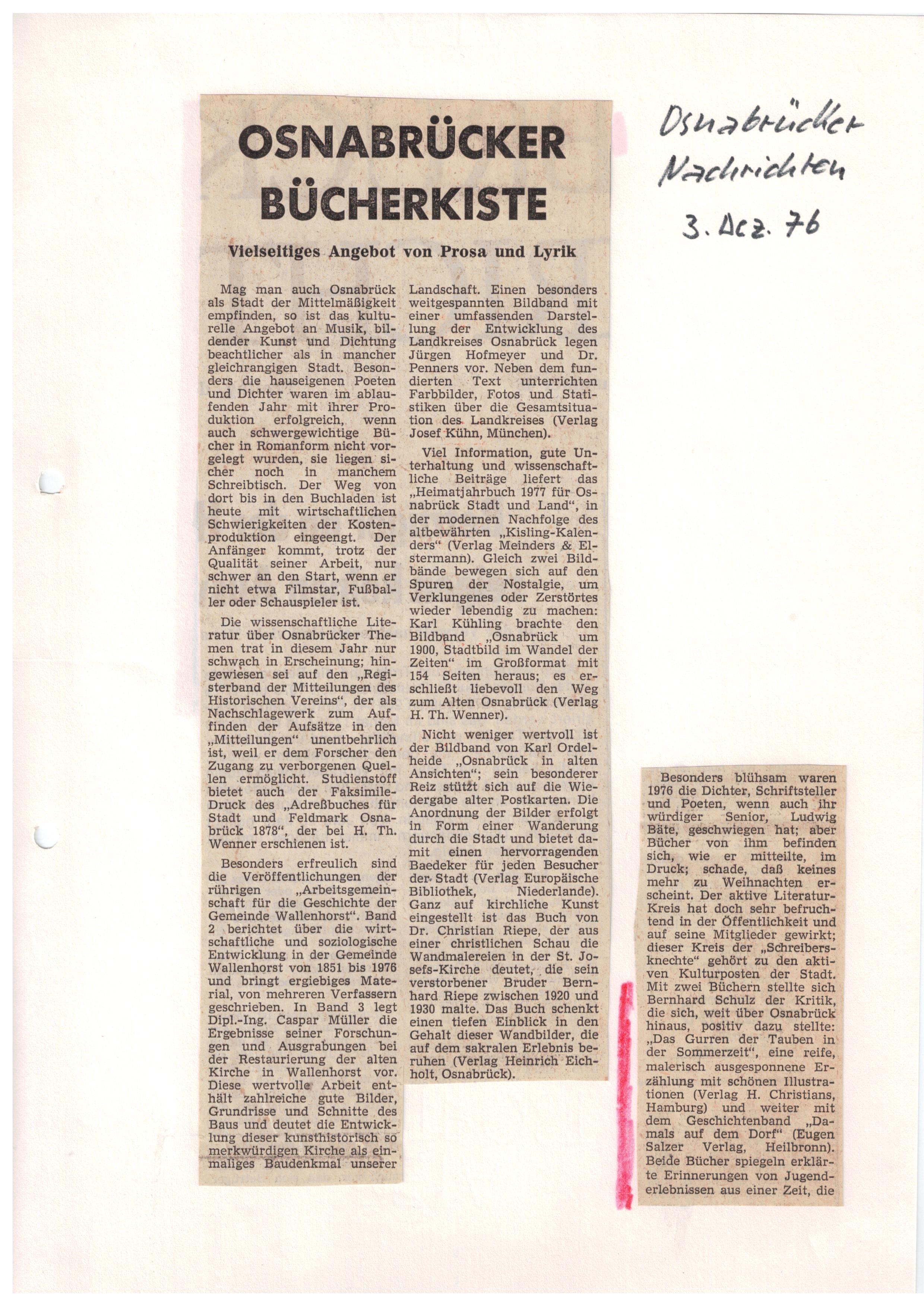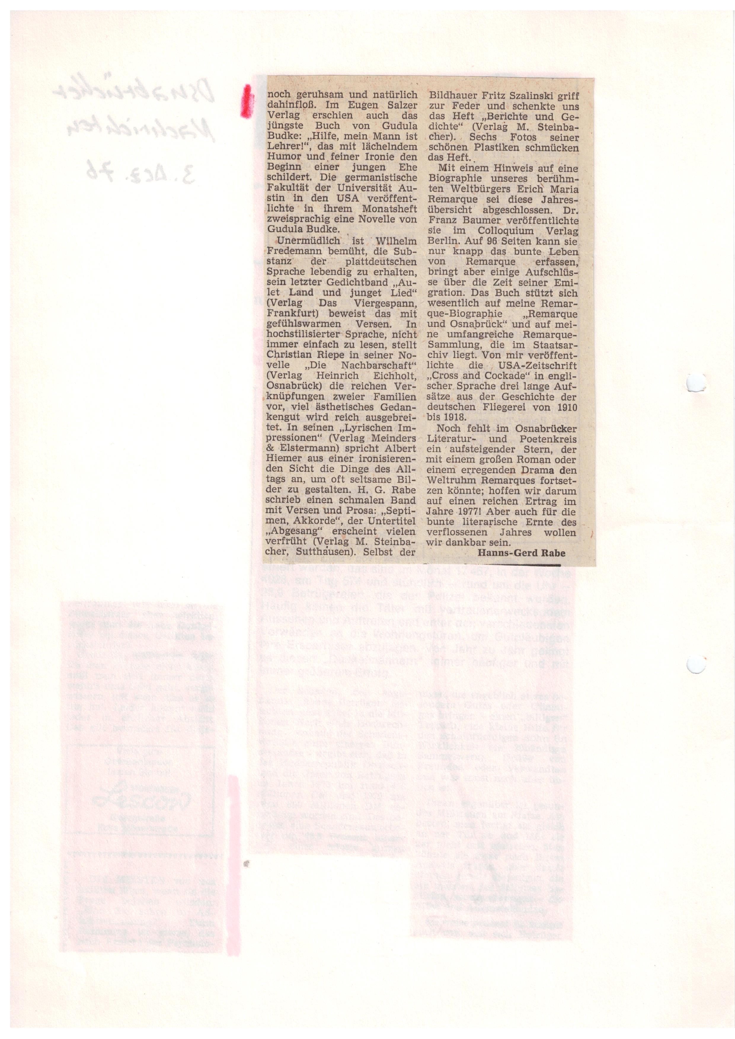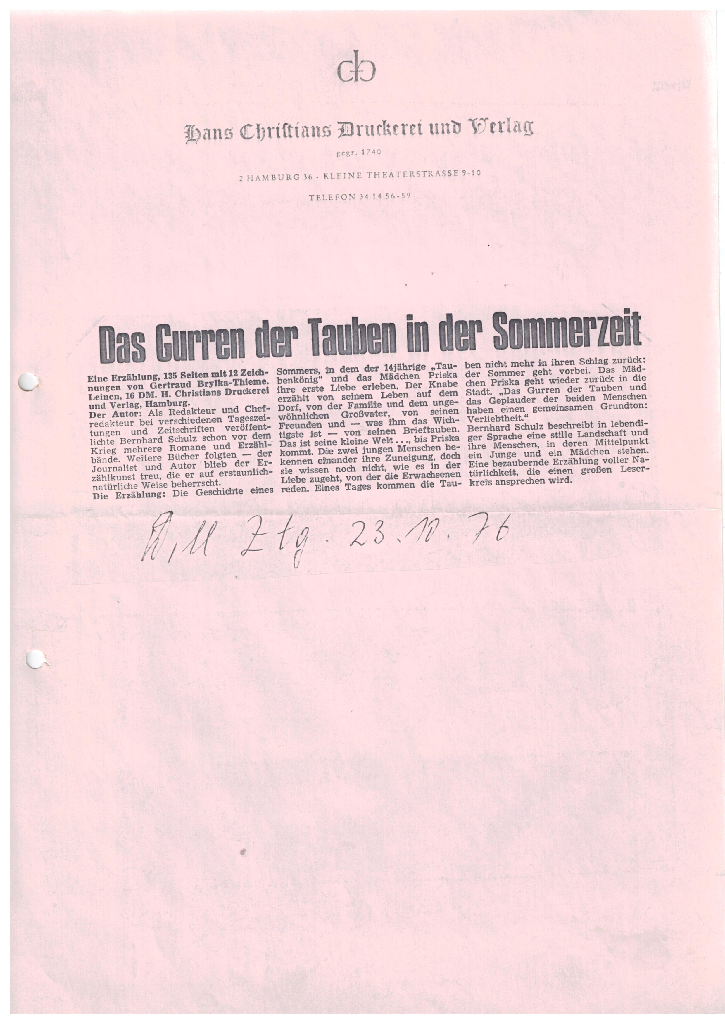 Aus: Kölnische Rundschau, Feuilleton-Redaktion, 12.8.76