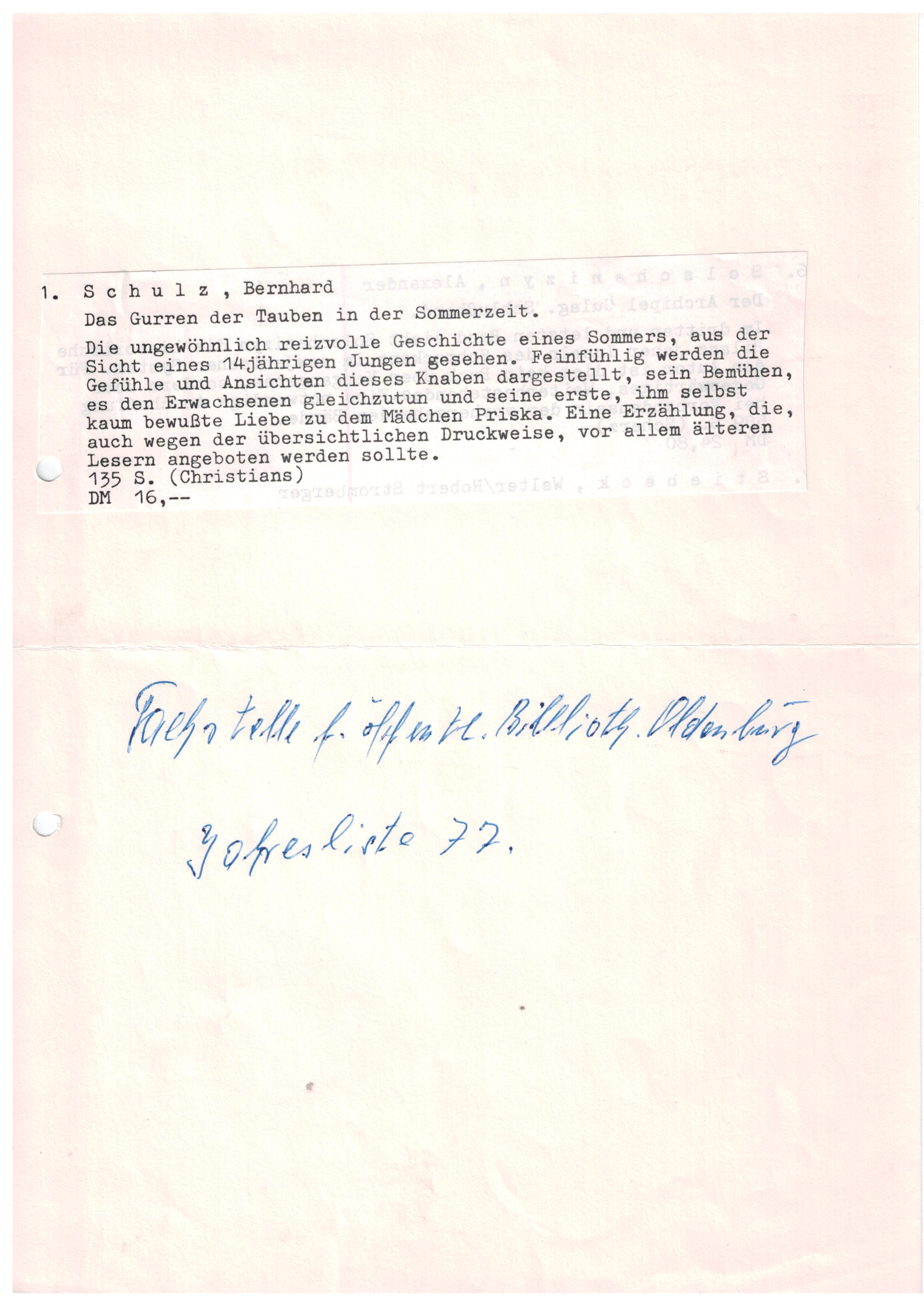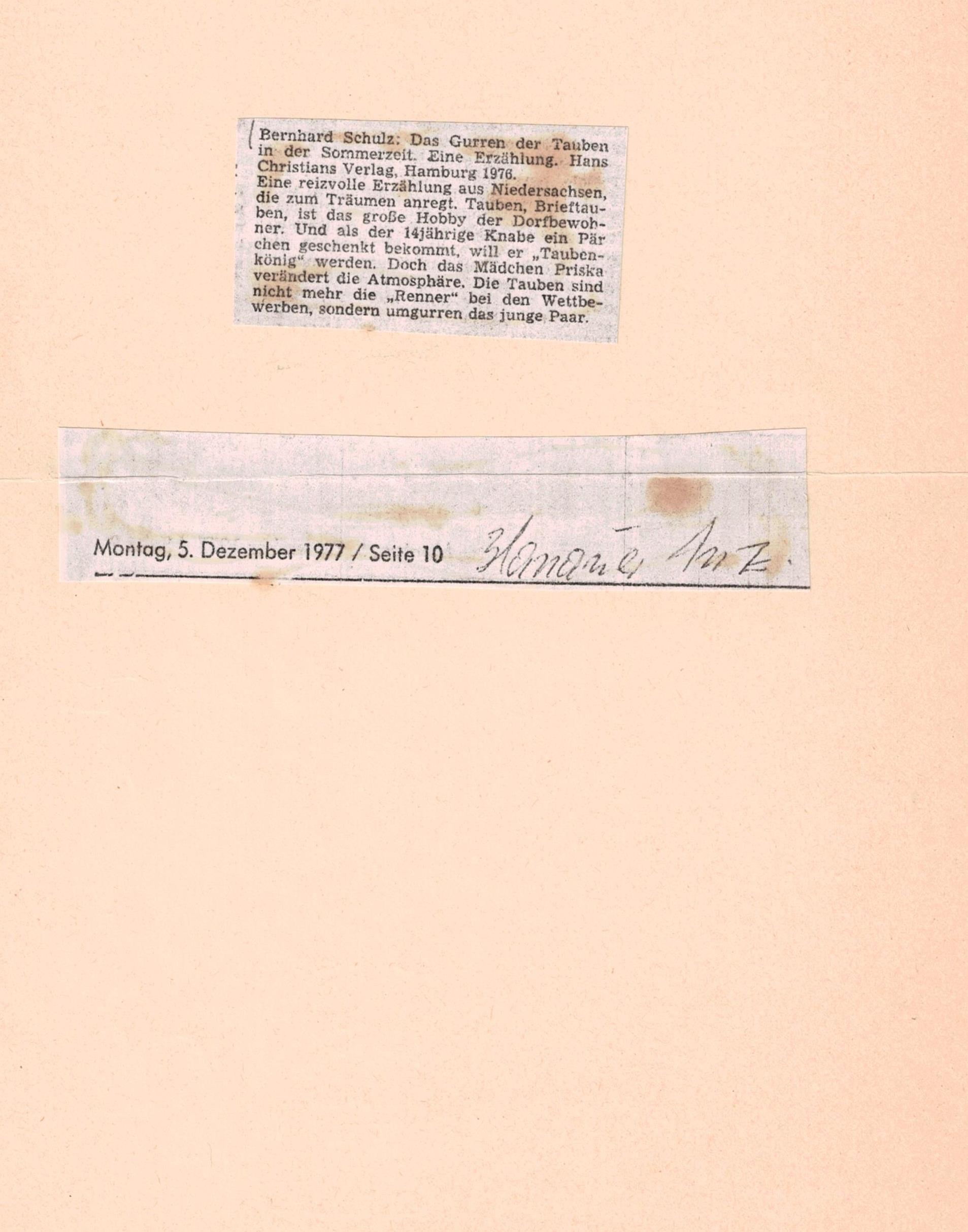 Eine Erzählung, Von Bernhard Schulz