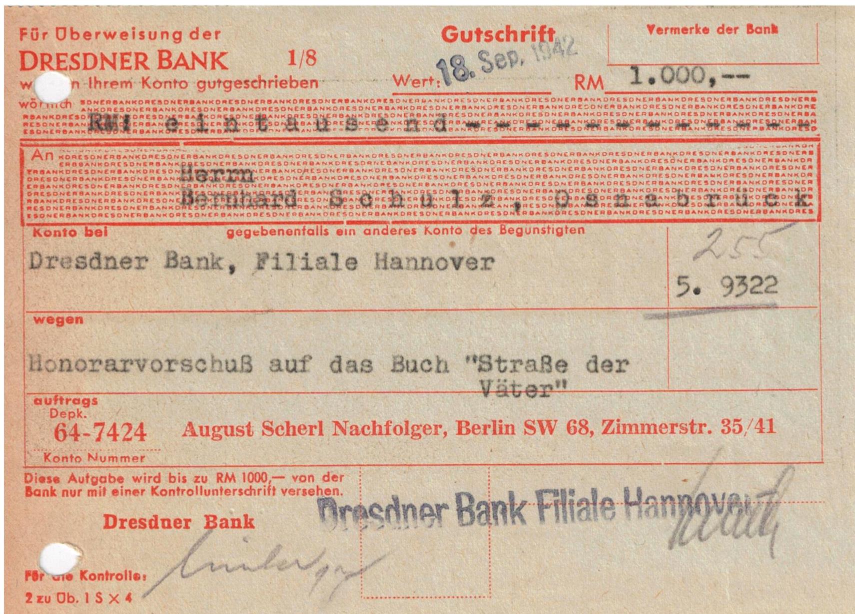 Väter", ein Roman, der, obwohl 1944 erschienen, erstaunlich wenig Nazi-Ideologie enthält: in trockenem,